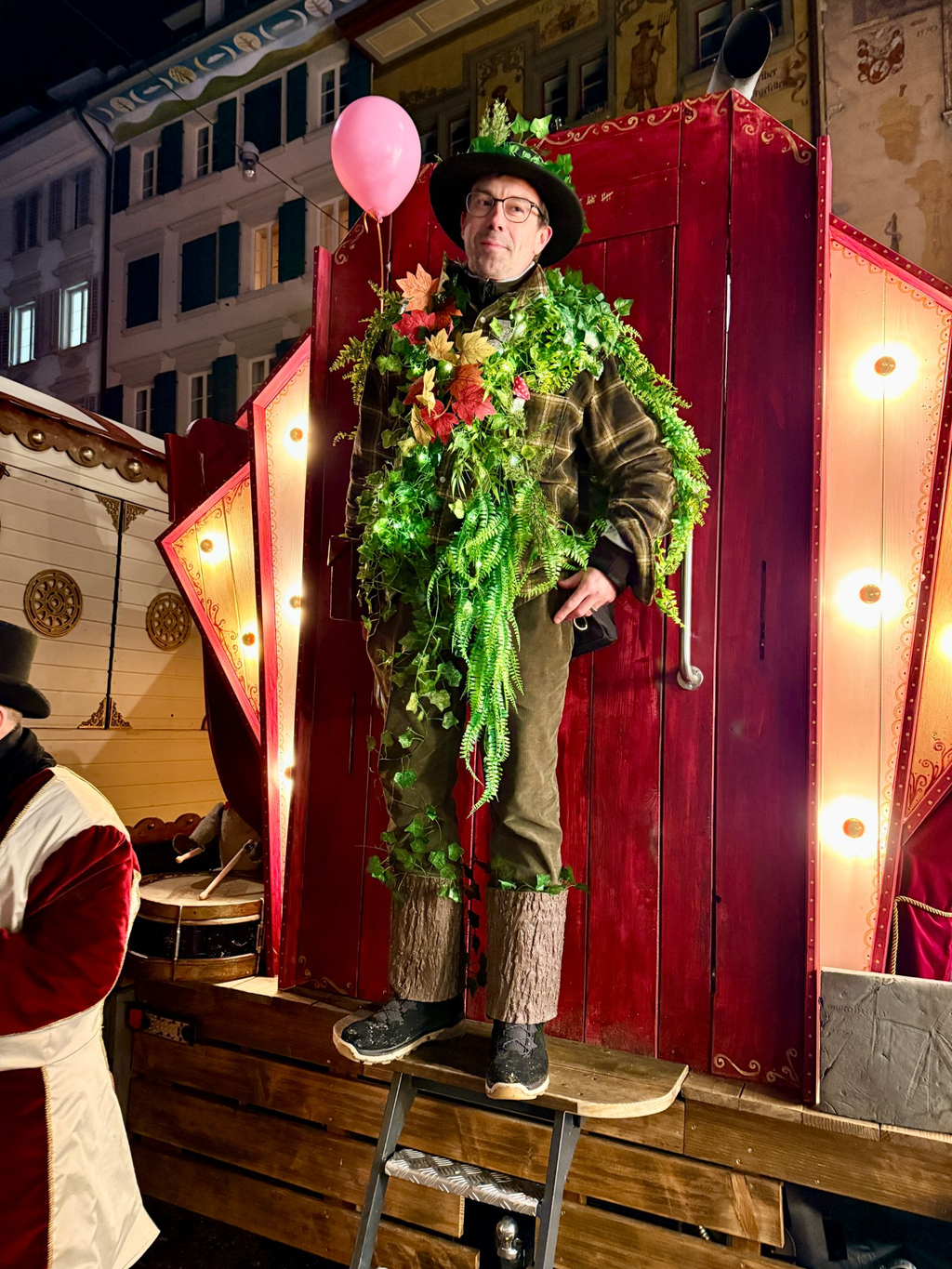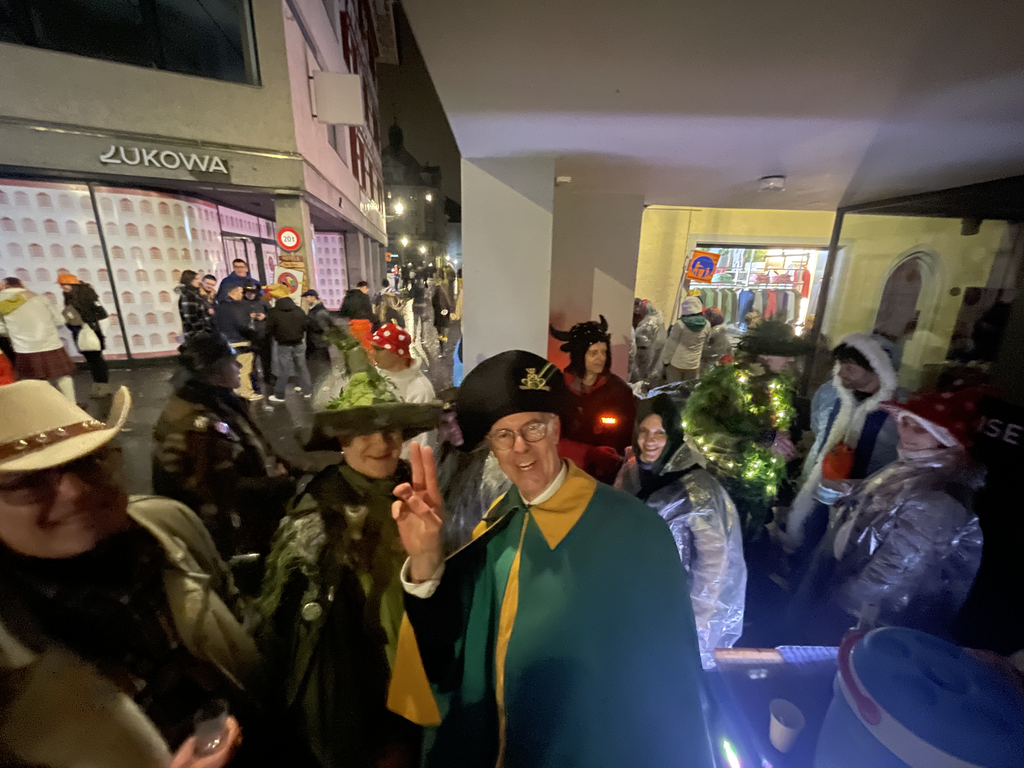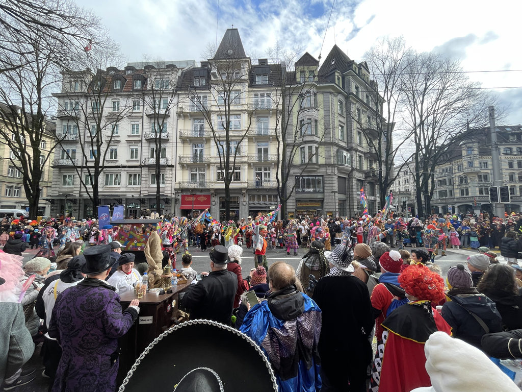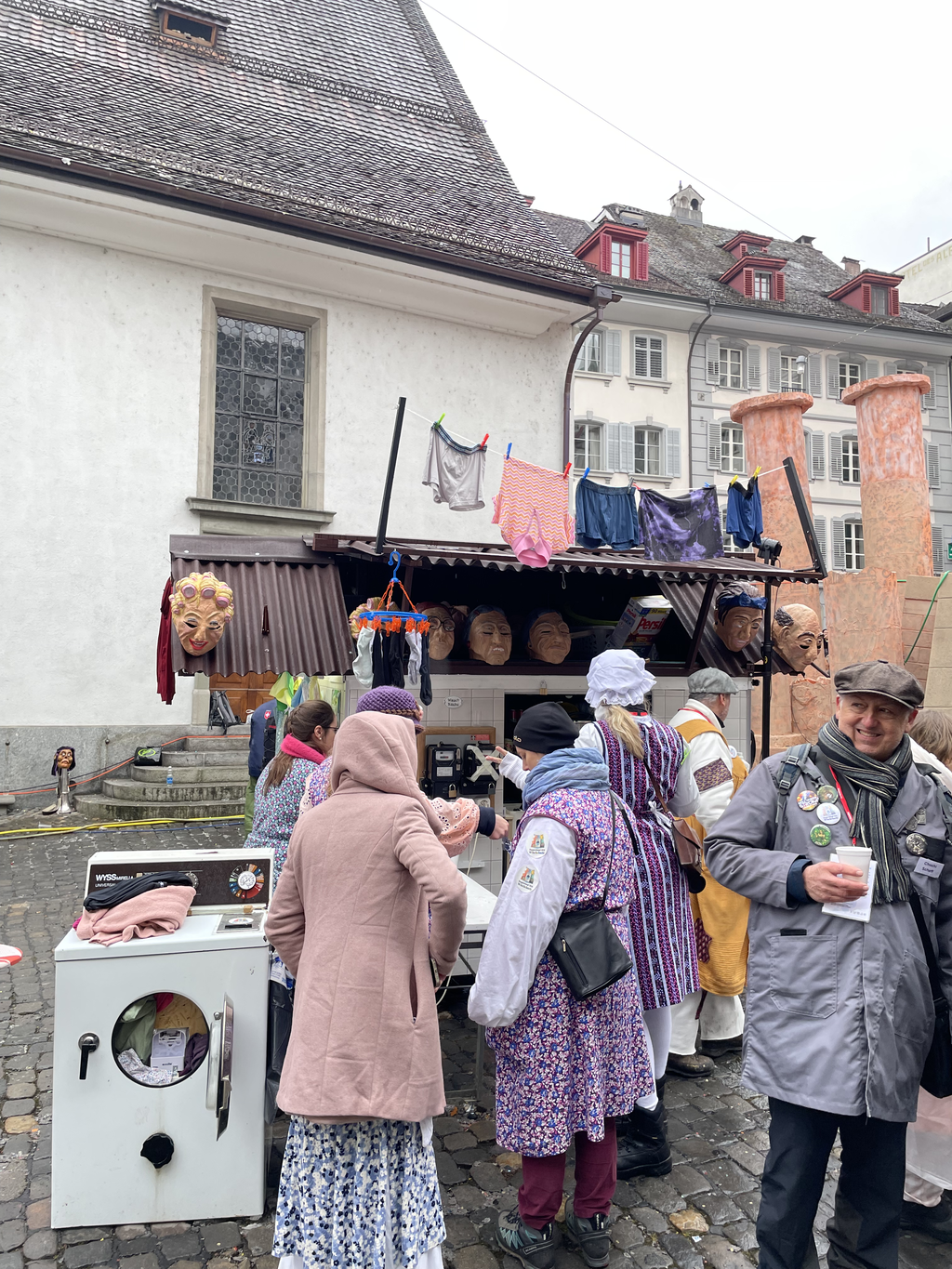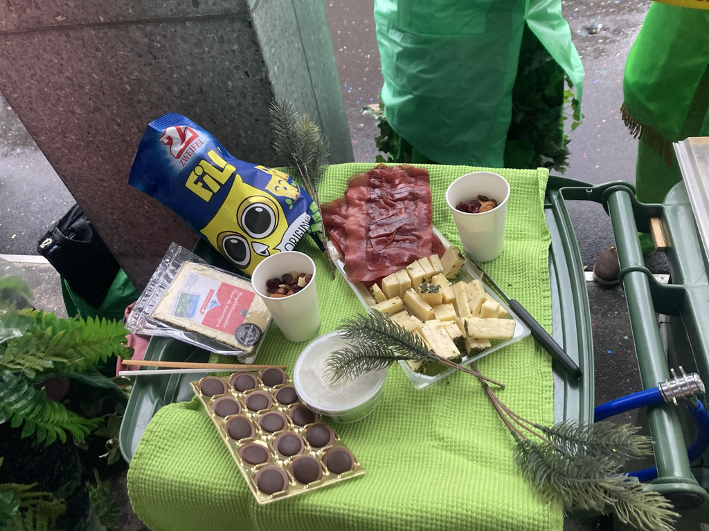 Für die Fasnacht 2024 spielen wir in einer Besetzung mit vier Trompeten, drei Posaunen, zwei Hörnlis, zwei Tubas, einem Schlagzeug und einem ökologisch geprüften Kaffeewagen (mit Extrazucker).
