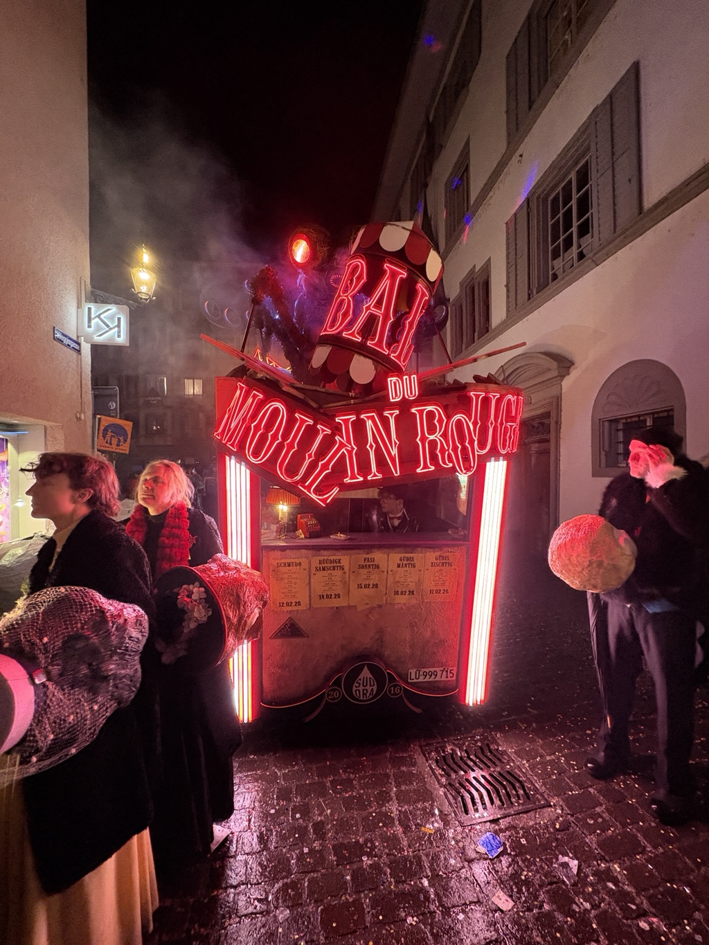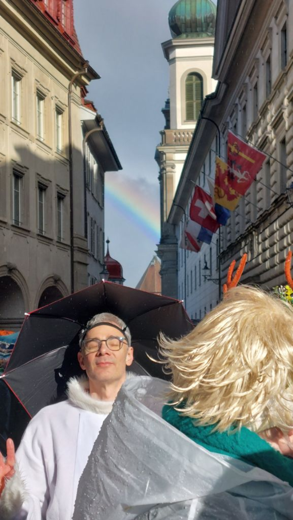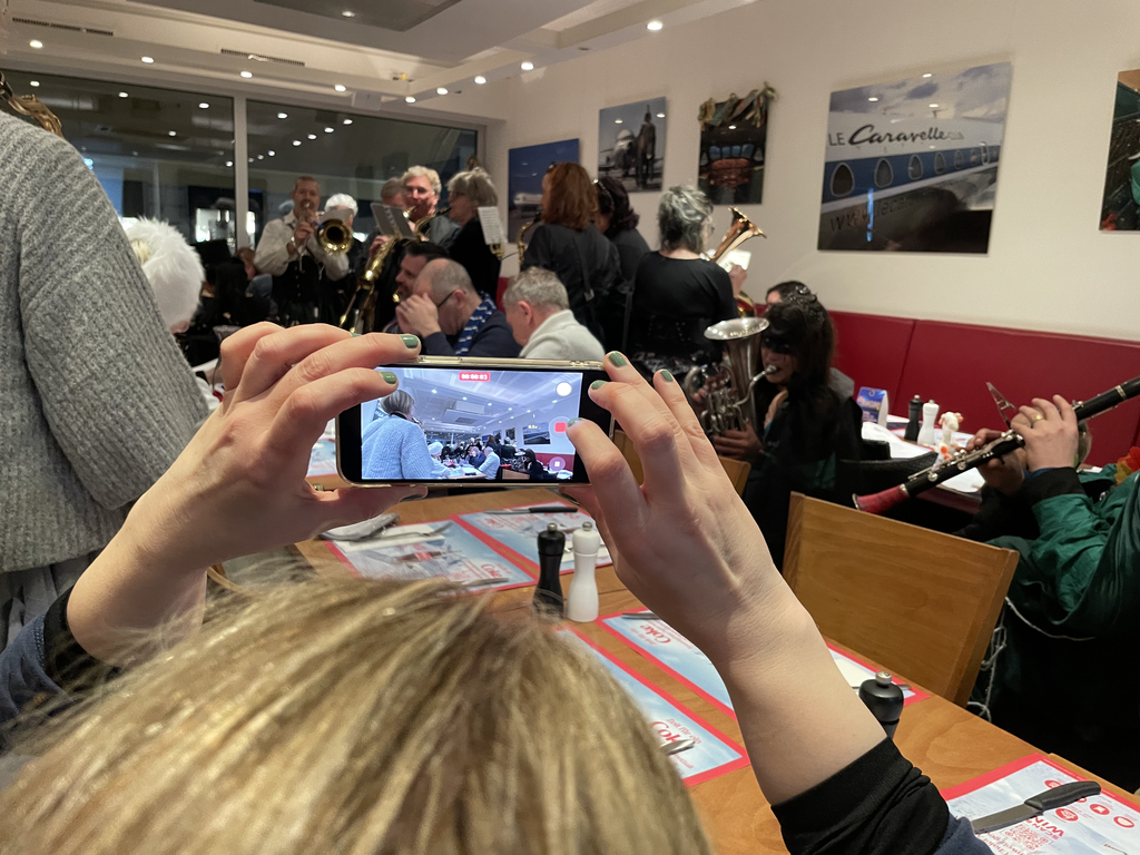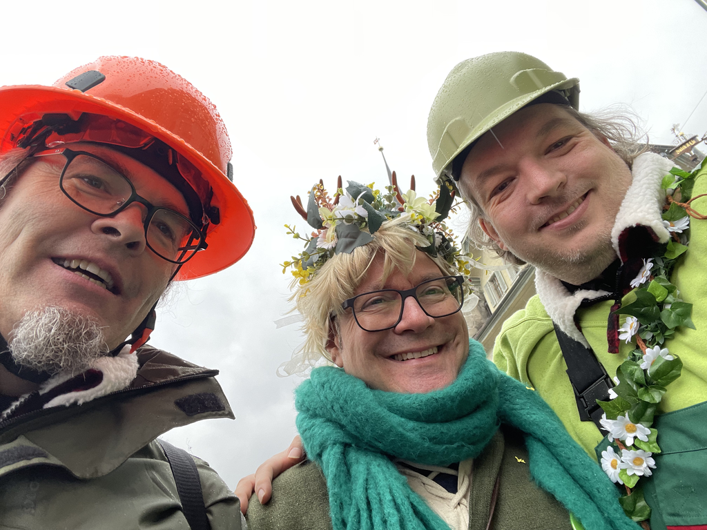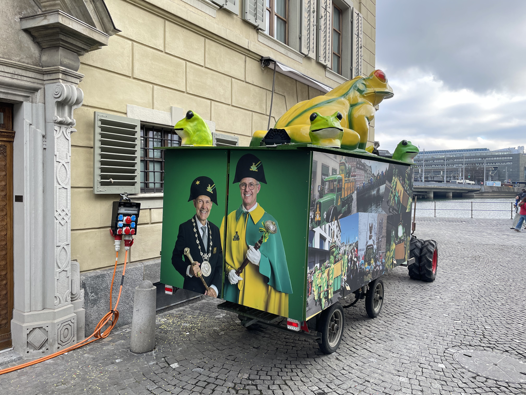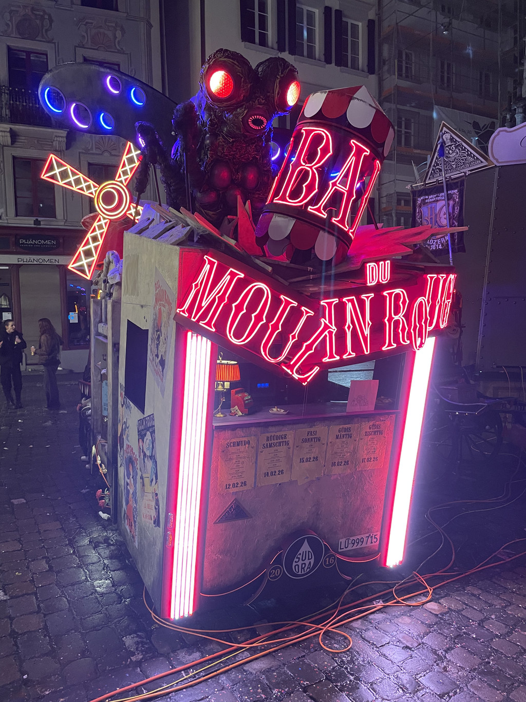 Für die Fasnacht 2024 spielen wir in einer Besetzung mit vier Trompeten, drei Posaunen, zwei Hörnlis, zwei Tubas, einem Schlagzeug und einem ökologisch geprüften Kaffeewagen (mit Extrazucker).
